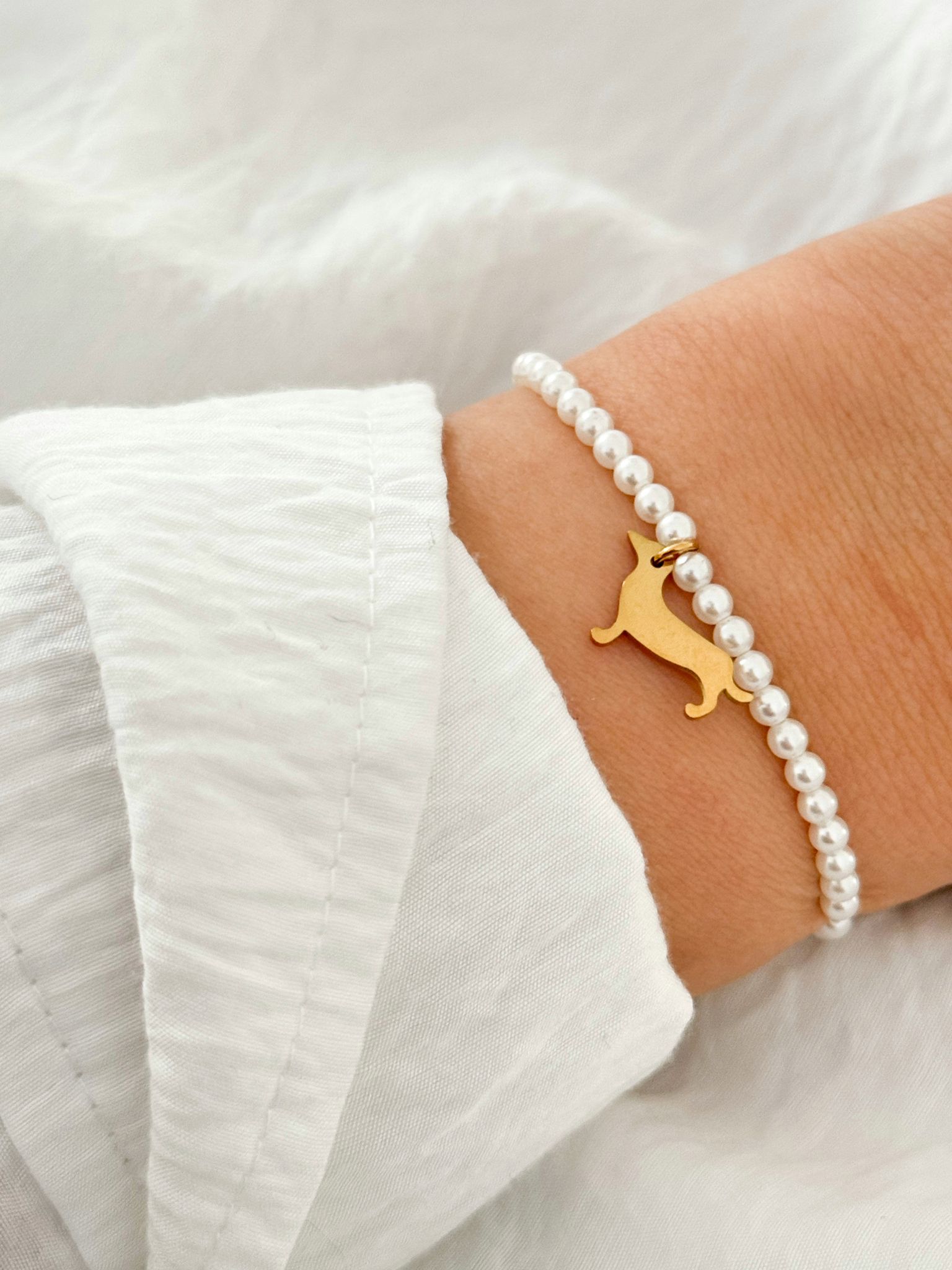 🐾 Armband „Dackel“ – Edelstahl Gold mit Perlmutt 🐾