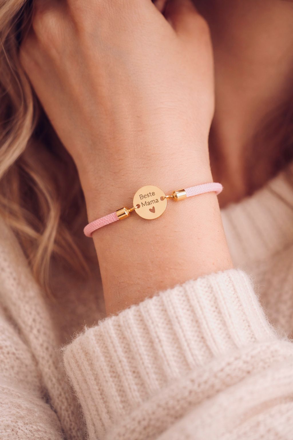 Gravur-Armband – Beste Mama & individuelle Gravur | Gold mit Nylonkordel