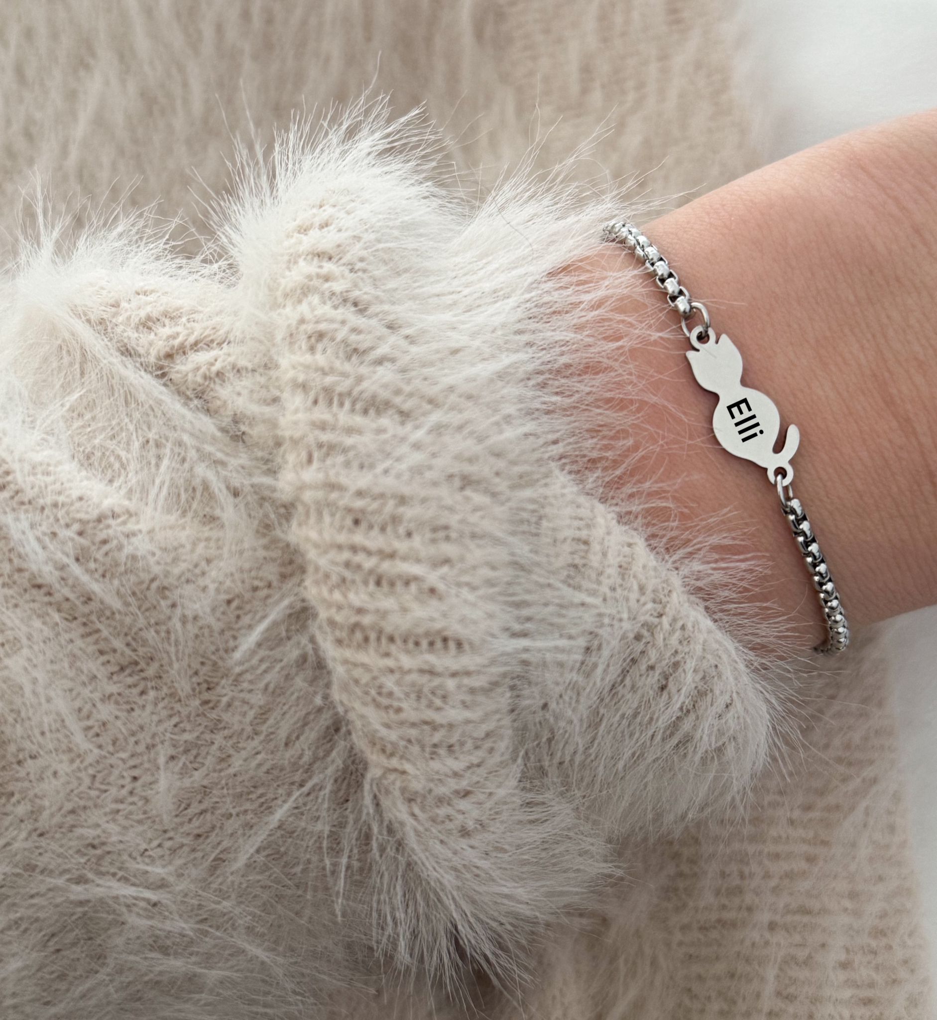 Armband Gravur Katze – Silber | Edelstahl