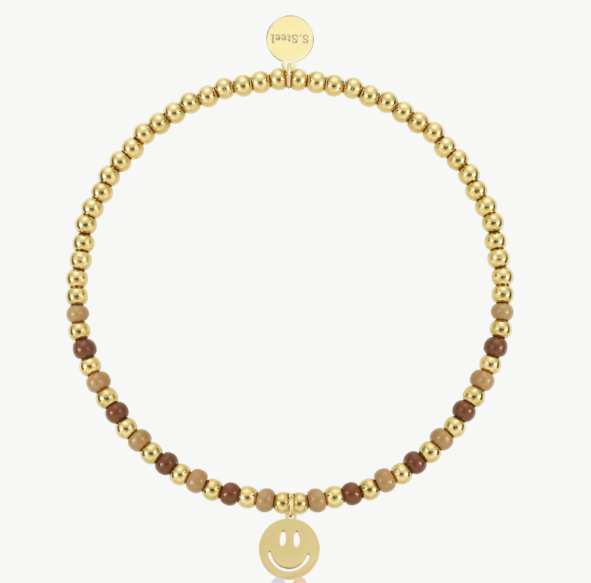 ✨ Smiley Armband – Gold mit braunen Akzenten
