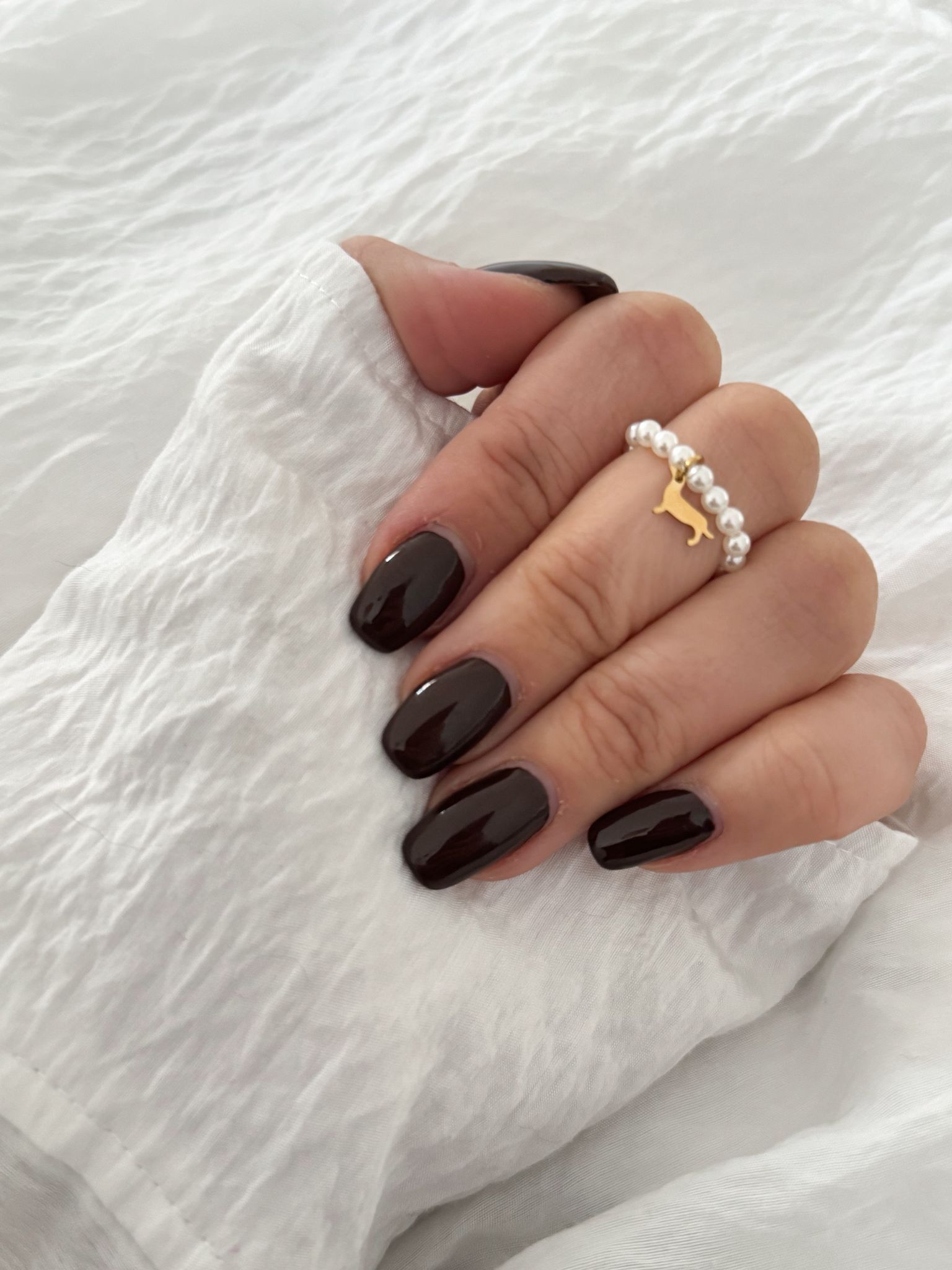 Wunderschöner Perlenring mit dem Dackel Pfote, aus hochwertigen Perlmutt Perlen.